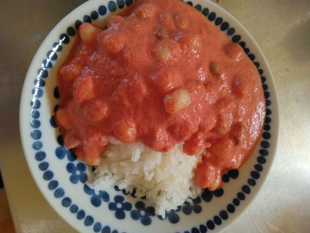 見た目は、甘そうなピンクカレーライスですが、辛さはあります。