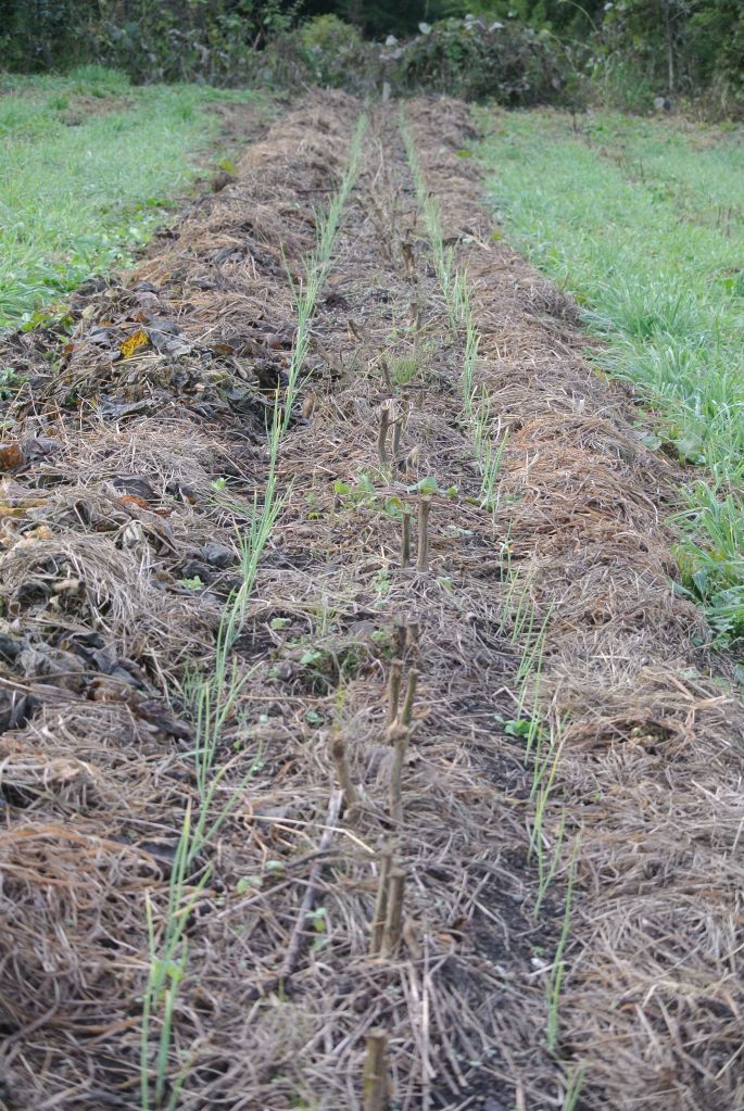 ☑オーチャードグラスの間、つまり150cmの畝には刈草などを敷き詰める。たまにミミズ堆肥。